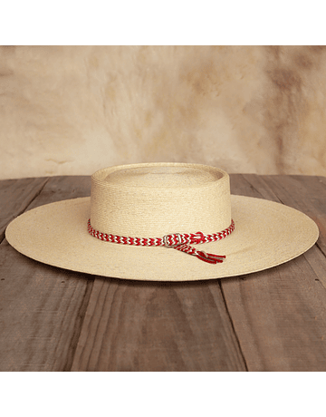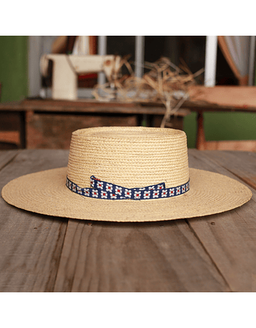 Chupalla de paja de trigo Ligún corriente trenzada, color gris teñida con quitral. Fibra natural característica de la localidad de Cutemu, comuna de Paredones.