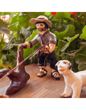 Decorative figures that make up a scene of a farmer plowing the land. Pieces made of clay, baked in a charcoal oven, rested and then hand-painted with acrylic. Height 12 cm. and width 23 cm.