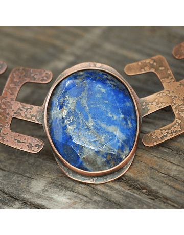 Necklace. Diameter 16cm. Petroglyph reproduction drawings with faceted lapis lazuli stone. Hammered copper technique. Completely handmade piece.