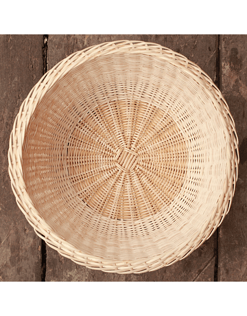 Bread basket without lid made with wicker from the Chimbarongo commune. Height 14 cm. and diameter 24 cm. (mouth). Fine fabric made with a thin rod divided into four and thinned in successive phases until it is very fine. Completely handmade.