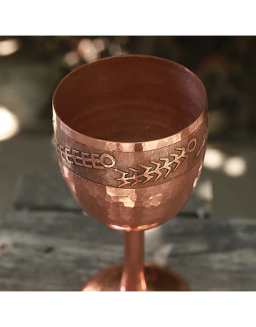 Coppa grande in rame. Altezza 20 cm. e diametro 10 cm. Riproduzione coloniale nella tecnica del rame martellato. Utilità realizzata interamente a mano.