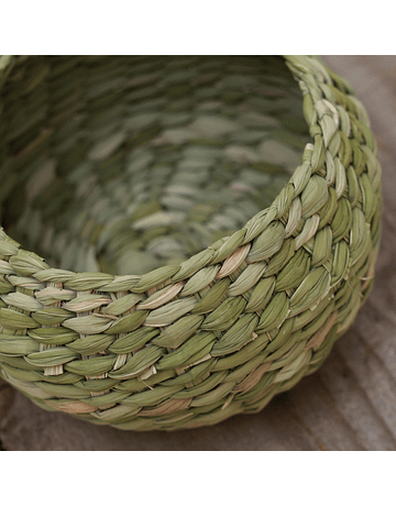 Joyero en totora. Diámetro 12 cm. Tejido fino en totora color verde natural secada a la sombra. Hecho completamente a mano.