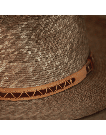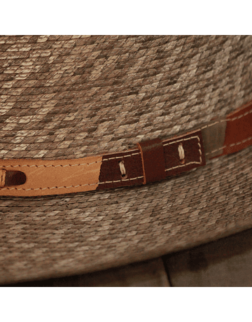 Sombrero en teatina, paja de trigo, trenzada. Fibra natural de la Región de O´Higgins y teñido con quitral.